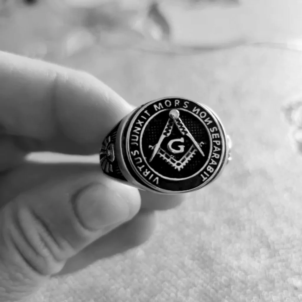 El compás de la Logia Masónica, junto con la letra "G", simboliza la búsqueda de equilibrio y perfección espiritual, con la "G" representando la geometría, la ciencia o a Dios, según la interpretación. El compás mide la moralidad y la justicia en la vida del masón, promoviendo la virtud y el autocontrol. La frase en latín "Virtus Junxit, Mors Non Separabit", que significa "Lo que la virtud ha unido, la muerte no lo separará", resalta la unión sagrada y eterna entre los hermanos masones, sugiriendo que los lazos construidos a través de la virtud perduran más allá de la muerte.