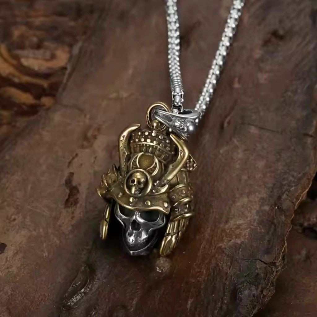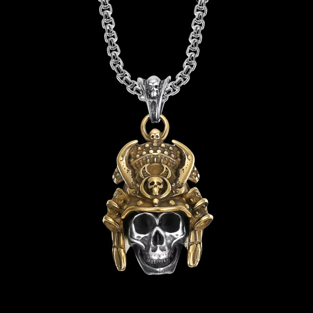 Una calavera samurái con casco dorado simboliza la dualidad entre la muerte y el honor. Representa el espíritu del guerrero que, incluso después de la muerte, mantiene su esencia indomable y su código de lealtad, coraje y disciplina. El casco dorado resalta la nobleza y el prestigio del samurái, mientras que la calavera recuerda la inevitable mortalidad que enfrenta todo guerrero. Juntas, evocan fuerza, respeto por el legado y valentía frente al destino.